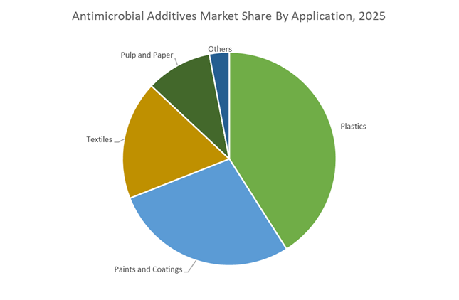 Plastics account for approximately 41% of antimicrobial additives demand in 2025, making polymer compounding the largest application segment. Silver ions, zinc pyrithione, copper-based systems, and legacy organics are integrated into PE, PP, ABS, and engineering plastics for medical devices, food packaging, consumer electronics, and appliance components such as refrigerator liners and washing machine drums. Post-COVID hygiene awareness has permanently elevated demand for antimicrobial touchpoint surfaces. Paints and coatings rank second, driven by hospital walls, HVAC systems, mold-prone interiors, and food processing facilities, with silver and copper technologies dominant and zinc-based solutions gaining on cost. Textiles remain important for activewear and medical fabrics using silver chloride and quaternary silanes, while pulp and paper benefits from EU plastic restrictions that favor antimicrobial-treated food-contact boards and tissues. Regionally, Asia-Pacific represents over 45% of global consumption, anchored by China’s plastics, textiles, and electronics manufacturing base.