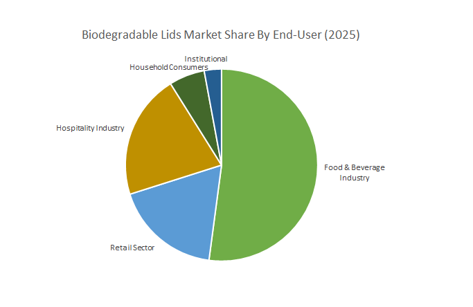 The food & beverage industry is the primary end-user, capturing 52.1% of total demand in 2025. Quick service restaurants (QSRs) and coffee chains such as Starbucks drive the adoption of PLA, CPLA, and paperboard lids to meet sustainability goals and regulatory requirements. The hospitality sector is the fastest-growing, as hotels and catering services phase out single-use plastics and shift toward compostable and biodegradable packaging. The retail sector is also important, with supermarkets and convenience stores embracing pre-packaged foods sealed with eco-friendly lids.