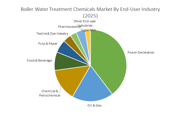 Within end-user industries, Power Generation leads the Boiler Water Treatment Chemicals market, capturing approximately 39.7% market share in 2025. The sector's dominance is driven by extensive boiler usage in thermal power plants, where reliable steam production, efficient heat transfer, and minimized downtime are paramount for operational excellence. Chemicals such as corrosion inhibitors, oxygen scavengers, and alkalinity builders remain crucial for maintaining boiler performance, safety, and compliance with stringent regulatory standards in the power generation sector. In contrast, the Pharmaceutical industry represents the fastest-growing segment, expanding at a notable 7.1% CAGR during 2025–2034. Growth in this sector is driven by stringent regulatory guidelines mandating high water purity standards, requiring specialized chemical treatments for contamination-free steam production used in pharmaceutical manufacturing processes. Additionally, the Food & Beverage water treatment industry maintains a steady growth trajectory, with an estimated CAGR of 9%, fueled by rigorous hygiene and sanitation requirements. Oil & Gas continues to heavily utilize oxygen scavengers and scale inhibitors for reliable steam generation and process integrity.