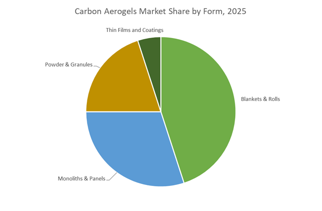 Aerospace platforms, cryogenic infrastructure, and EV battery systems increasingly operate in environments where traditional insulation materials either occupy too much space or fail to deliver sufficient thermal resistance. Carbon aerogels enable thinner insulation layers with materially higher performance, allowing OEMs to redesign systems around reduced weight, lower boil-off losses, and improved thermal safety. As electrification and cryogenic hydrogen infrastructure expand, insulation performance is becoming a design constraint, not a specification detail-pulling carbon aerogels into earlier stages of system architecture decisions.