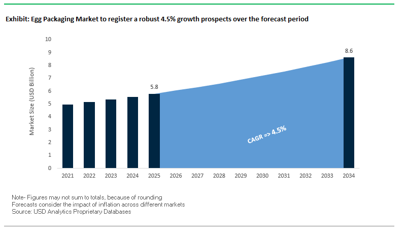 This report investigates the global egg packaging market, analyzing key innovations, material transitions, and supply chain strategies that are redefining food safety, sustainability, and operational efficiency. USDAnalytics’ analysis reviews breakthroughs in molded fiber technology, water-resistant coatings, smart traceability solutions, and automation-compatible packaging designs, highlighting their role in enhancing egg protection, brand visibility, and consumer trust. This report is an essential resource for packaging engineers, supply chain managers, and sustainability executives seeking actionable insights into regulatory compliance, circular economy adoption, and logistics optimization. It also examines strategic mergers, acquisitions, and certification achievements that influence competitive dynamics, while evaluating high-performance designs tailored for retail, foodservice, and institutional distribution. By assessing historical trends from 2021 to 2024 and providing forecasts through 2034, this study delivers a comprehensive understanding of market expansion, material adoption, and regional growth opportunities, enabling stakeholders to anticipate evolving consumer expectations and regulatory pressures. Furthermore, the research highlights portfolio innovations, automation readiness, and eco-friendly packaging solutions across leading companies, ensuring professionals can navigate the market’s shift from polystyrene and plastics to recyclable, compostable, and technologically advanced formats.