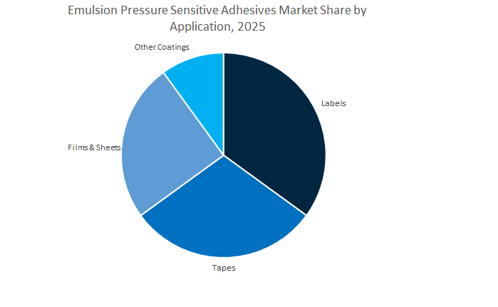 Acrylic-based emulsion pressure-sensitive adhesives (PSAs) dominate the global market, holding the largest share thanks to their outstanding balance of tack, peel, and shear properties combined with superior UV, oxidation, and aging resistance. These waterborne acrylic dispersions have become the industry standard for labels, packaging tapes, and graphic films that require long-term clarity, non-yellowing performance, and weather durability. Unlike rubber-based systems, acrylic emulsions maintain adhesion over a wide temperature range and are resistant to moisture and chemicals—key advantages in automotive, electronics, and durable goods labeling. Their adaptability to high-speed coating lines and their ability to be formulated for both permanent and removable adhesives further solidify their dominance. The global push toward low-VOC, solvent-free adhesive technologies has also accelerated the adoption of acrylic emulsions in regulatory-sensitive markets such as North America and Europe. As sustainability and recyclability become core priorities in packaging and labeling, acrylic-based PSAs are increasingly tailored for recyclable paper and film substrates, strengthening their long-term leadership position in the emulsion PSA industry.