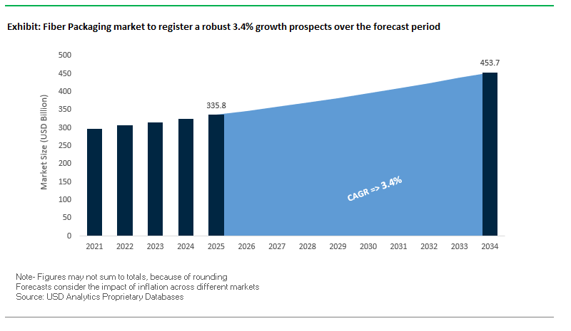The global fiber packaging market is projected to grow from $335.8 billion in 2025 to $453.7 billion by 2034, expanding at a CAGR of 3.4%. Fiber-based packaging has become the backbone of sustainable packaging solutions, replacing plastics in multiple applications ranging from foodservice containers to e-commerce shipping boxes. For industry professionals and buyers, the market answers critical questions around sustainability compliance, performance in logistics, and the role of innovation in barrier technologies. The growing need to reduce carbon footprints and align with global ESG targets is further accelerating adoption.