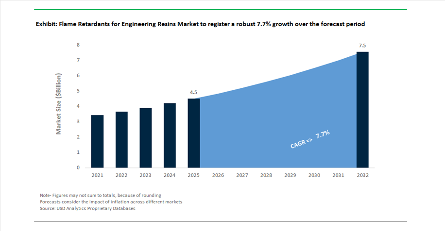 The market was valued at USD 4.5 billion in 2025 and is projected to reach USD 7.6 billion by 2032, expanding at a CAGR of 7.7%. Growth is driven by increasing fire safety regulations, electrification trends, and demand for high-performance engineering plastics.