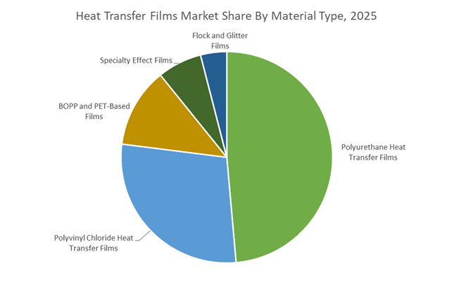 Polyurethane (PU) heat transfer films accounted for 48.60% of the market share in 2025, making them the dominant material category. PU films offer superior elasticity, soft texture, and wash durability compared with traditional PVC films. These properties make them ideal for sportswear, stretch fabrics, and premium fashion garments that require long-lasting decorative graphics. Manufacturers are also developing solvent-free and water-based PU film technologies to reduce environmental impact while maintaining performance characteristics.