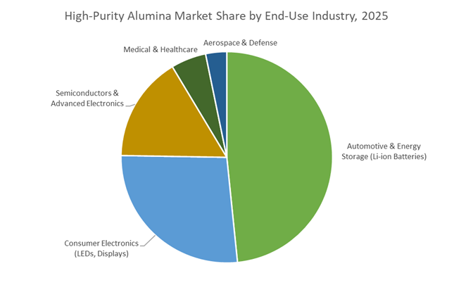 Over the forecast period, competitive positioning in the HPA market will be shaped by process control, impurity management, and scalable purification economics, rather than raw alumina availability. Producers capable of delivering stable 4N-grade output with tight control over trace metals, moisture, and phase purity - while scaling capacity to match battery and LED demand - will capture disproportionate value.