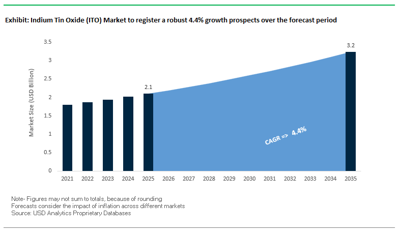 The latest Indium Tin Oxide (ITO) Market study from USDAnalytics delivers a comprehensive strategic assessment of how transparent conductive films, high-purity sputtering targets, and indium refining dynamics are reshaping value creation across displays, photovoltaics, smart glass, and automotive electronics. Drawing on granular quantitative datasets and expert commentary, this report investigates demand shifts from conventional LCD/OLED architectures to micro-LED, flexible, and large-format panels, and evaluates how Critical Raw Material policies are influencing indium sourcing, pricing, and recycling investments. The study maps technology breakthroughs in ultra-high-purity ITO targets, advanced IR-absorbing coatings, high-resolution patterning, and transparent heating films for ADAS and LiDAR modules, linking them to capacity expansions, capex cycles, and emerging application clusters. In-depth analysis reviews cover competitive positioning, vertical integration strategies, and the interplay between ITO and alternative transparent conductive film technologies such as silver nanowires, metal meshes, and hybrid oxide systems. The report highlights how purity constraints (4N–6N), deposition efficiency, and device lifetime requirements are redefining procurement strategies for panel makers, solar manufacturers, and sensor integrators. By combining robust market modelling with detailed technology roadmaps and policy impact assessments, this report is an essential resource for materials suppliers, device OEMs, equipment vendors, investors, and policymakers seeking to benchmark performance, derisk sourcing decisions, and capture growth opportunities in the global Indium Tin Oxide ecosystem.
