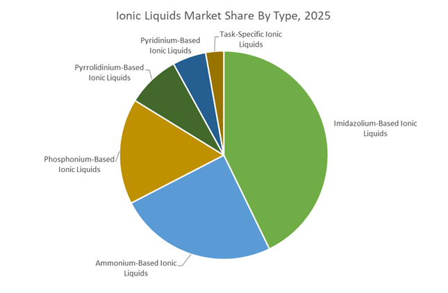 Imidazolium-based ionic liquids accounted for 42.8% of market share in 2025, making them the most widely used chemistry. Their low viscosity, high ionic conductivity, and wide electrochemical stability window make them ideal for battery electrolytes, electrochemical devices, catalysis, and advanced chemical synthesis processes.