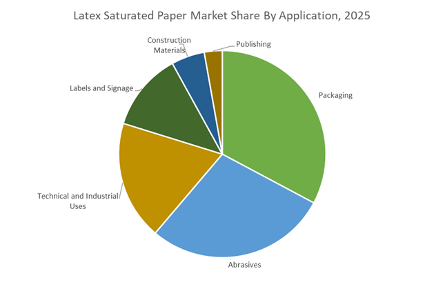 Packaging represented 32.8% of market demand in 2025, driven by growing e-commerce logistics and the need for durable shipping materials. Latex-saturated papers offer high tear resistance, moisture protection, and printable surfaces, making them ideal for reinforced envelopes, branded packaging tapes, and tamper-evident packaging systems.