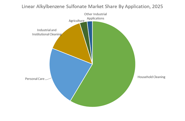 Household cleaning accounted for 58.60% of the Linear Alkylbenzene Sulfonate Market share in 2025, establishing it as the largest application segment for LAS surfactants. Linear alkylbenzene sulfonate remains the primary anionic surfactant used in laundry detergents, dishwashing liquids, and surface cleaners, due to its excellent ability to remove oils, dirt, and particulate soils from fabrics and surfaces. The global scale of detergent consumption ensures sustained demand for LAS across household laundry care, kitchen cleaning, and general home sanitation products. Manufacturers rely on LAS because it delivers consistent cleaning performance across a wide range of water hardness levels and washing conditions, while maintaining cost efficiency in high-volume detergent production. In 2025, evolving consumer habits and sustainability initiatives have accelerated the shift toward cold water washing practices, aimed at reducing household energy consumption. Detergent producers have therefore optimized LAS-based formulations for improved solubility and cleaning efficiency at lower washing temperatures, enabling effective stain removal while supporting energy-efficient laundry practices.