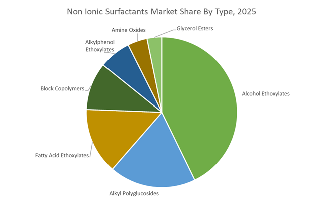 Alcohol ethoxylates accounted for 42.8% of the Non Ionic Surfactants Market share in 2025, making them the most widely used class of non-ionic surfactants across cleaning, personal care, and industrial formulation markets. Alcohol ethoxylates are favored due to their excellent detergency, strong grease removal capability, high wetting efficiency, and compatibility with both anionic and cationic surfactants, enabling flexible formulation across a broad range of products. These surfactants are widely incorporated into laundry detergents, dishwashing liquids, industrial cleaners, textile processing chemicals, agrochemical formulations, and oilfield additives, where they function as emulsifiers, wetting agents, and dispersants. Their key advantage lies in the ability to precisely control ethylene oxide chain length, allowing formulators to tailor the hydrophilic-lipophilic balance (HLB) for specific applications. In 2025, a major industry trend has been the shift toward bio-based alcohol ethoxylates derived from natural fatty alcohols obtained from vegetable oils such as palm and coconut oil, enabling surfactant manufacturers to offer renewable and RSPO-certified product lines that align with sustainability commitments while maintaining equivalent cleaning performance and formulation stability.