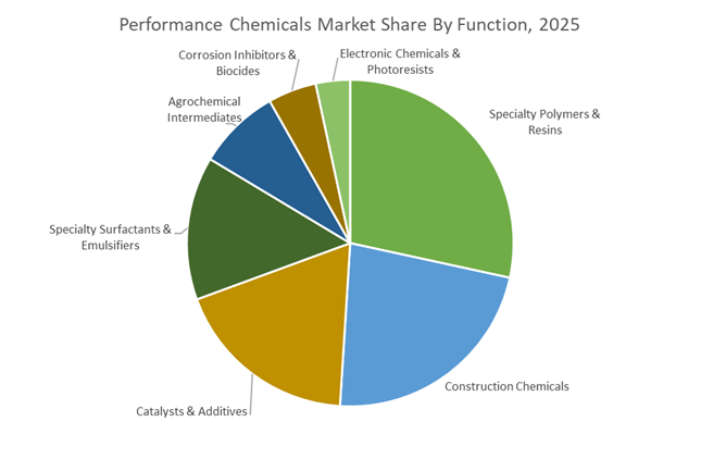 Specialty polymers and resins accounted for 28.40% of the Performance Chemicals Market by function in 2025, reflecting their critical role in enabling advanced material performance across multiple industries. These materials provide tailored properties such as mechanical strength, chemical resistance, adhesion, flexibility, and thermal stability required in automotive components, electronic devices, packaging materials, and construction systems. Specialty polymer technologies include engineering thermoplastics, high-performance resins, and advanced composite materials used in demanding industrial applications. In 2025, sustainable polymer innovation within specialty materials development is accelerating, with chemical producers introducing bio-based, recyclable, and biodegradable polymer solutions that support circular economy strategies while maintaining the performance requirements of high-value industrial applications.