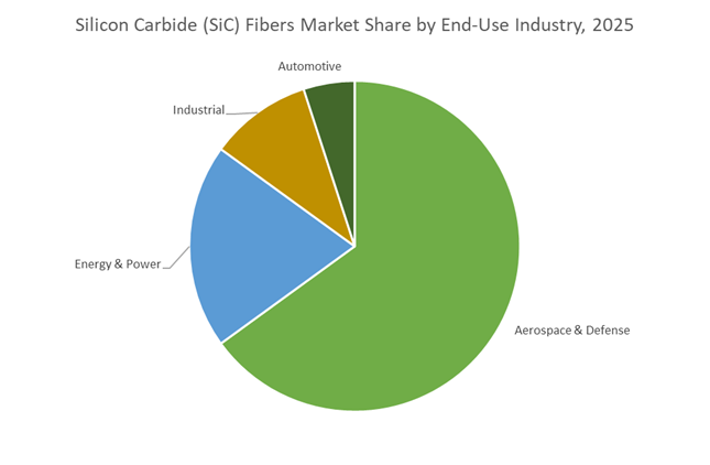 The Aerospace & Defense sector, holding approximately 65% of the global SiC fibers market, is the unequivocal growth engine and highest-value segment due to its stringent performance requirements and rapid adoption of SiC/SiC Ceramic Matrix Composites (CMCs) in next-generation propulsion and thermal management systems. SiC fibers enable step-change improvements in engine efficiency and durability because SiC CMCs operate at temperatures up to 1650°C, far surpassing nickel-based superalloys limited to roughly 1100°C. Their extreme heat tolerance, coupled with a weight reduction of up to 70%, directly translates into major benefits for jet engines, including improved thrust-to-weight ratios, reduced cooling air requirements, and fuel consumption reductions in the range of 10–15%, as demonstrated in advanced commercial engines like GE’s LEAP. These performance gains align with aviation’s core imperatives: lowering emissions, increasing fuel efficiency, and reducing maintenance intervals. Additionally, defense applications—including thermal protection systems, hypersonic vehicles, missile propulsion components, and lightweight armor—depend heavily on SiC fibers’ stability under extreme stress and temperature. Because aerospace applications involve stringent qualification cycles and extremely high reliability requirements, SiC fibers used in this sector command premium prices—often ranging from $1,400 to $9,000 per kilogram—cementing Aerospace & Defense as the market’s highest revenue contributor. This entrenched reliance on SiC CMCs ensures that the segment will continue to dominate SiC fiber consumption over the next decade.