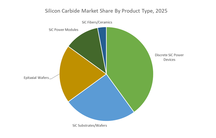 Electric vehicles represent the largest demand segment, driven by traction inverters, onboard chargers, and DC fast-charging systems. Renewable energy inverters and industrial motor drives are also major contributors due to efficiency and reliability requirements. AI data centers are emerging as a fast-growing application with rising SiC power content per server rack. Rail and grid infrastructure further expand demand.