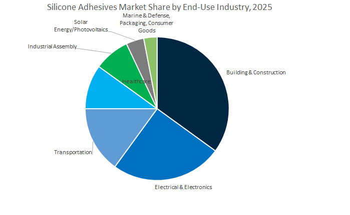 The Electrical & Electronics industry represents a rapidly expanding segment, fueled by the global proliferation of smart devices, 5G infrastructure, and electric vehicles (EVs). Silicone adhesives play a vital role in potting, encapsulation, and component bonding, ensuring superior electrical insulation and protection against moisture, dust, and thermal stress. Their dielectric properties and thermal management capabilities make them indispensable in semiconductor packaging, LED assembly, and sensor integration. The Transportation sector also contributes significantly to market growth, as silicone adhesives are increasingly adopted in vehicle body assembly, glass bonding, and vibration-dampening applications for both traditional and electric vehicles. In aerospace and rail transport, they deliver lightweighting benefits, durability, and long-term fatigue resistance.