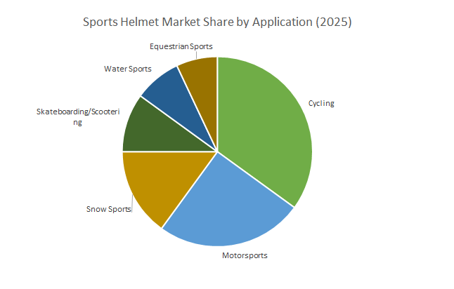 Cycling leads with over 35% market share, followed by motorsports at 25%. Growth is also notable in snow sports, skateboarding, and equestrian helmets due to rising safety awareness, government initiatives, and the adoption of connected helmet technologies.