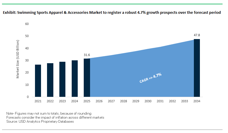 This report investigates the Swimming Sports Apparel & Accessories Market, delivering strategic breakthroughs, analysis reviews, and highlights that illustrate how high-performance innovation, sustainable material adoption, and advanced retail strategies are shaping the sector’s evolution through 2034. Developed by USDAnalytics, the study examines competitive brand positioning, regional performance, and emerging technologies—from drag-reduction textiles to UV-responsive fabrics—while mapping demand across competitive, training, and recreational swimming segments. This report is an essential resource for sports apparel executives, product developers, investors, and retailers seeking data-driven insights on performance, sustainability, and consumer behavior patterns in a market increasingly influenced by health, wellness, and lifestyle trends. Scope includes-